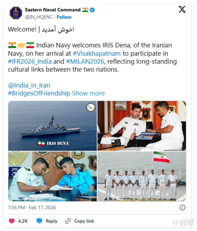 2月的印度舟师官方账号,还寥削发帖暗示强烈迎接,称伊朗战舰的到来,“反应了两国间弥远的文化揣度”。